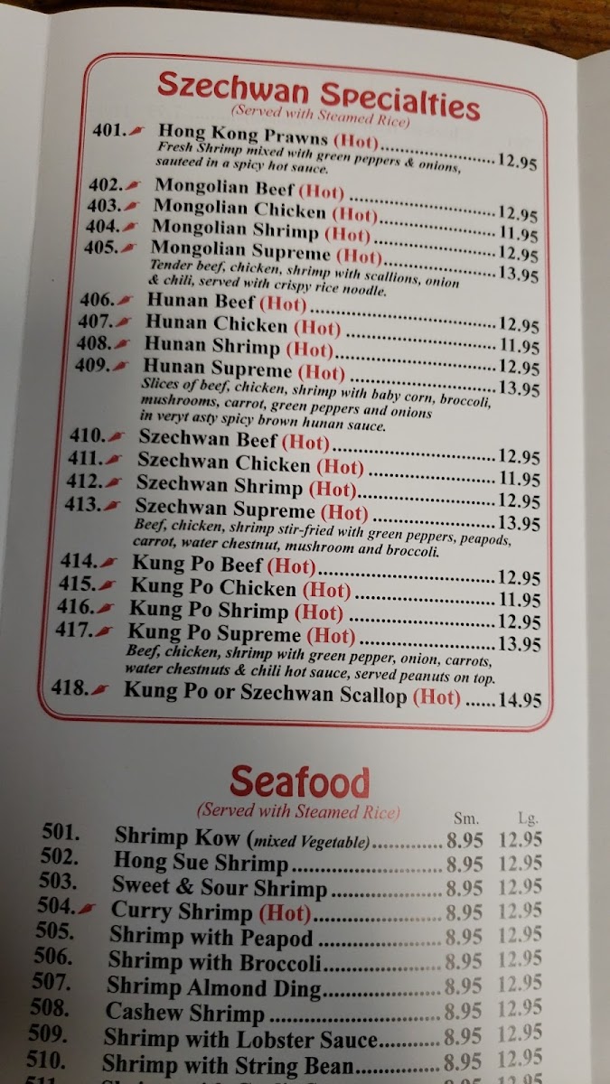 The menu features a delightful array of choices that cater to every palate. For beef lovers, the Moo Shu Beef served with rice or pancakes ($23.95) is a favored choice, boasting a balance of tender meat and vibrant veggies wrapped in a soft pancake. Alternatively, try the Beef with Broccoli or the Cashew Beef, both equally enticing and served with steamed rice for a wholesome meal.